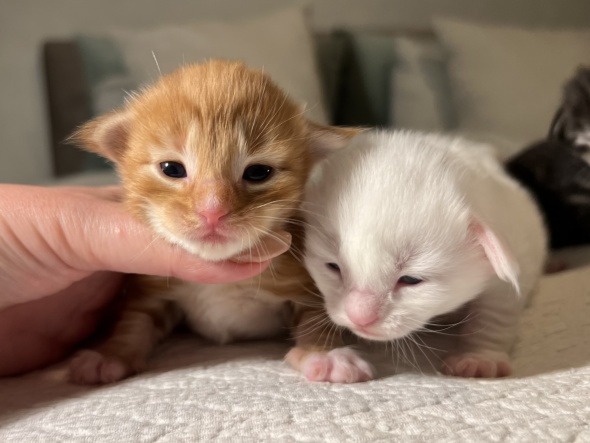 Kattungarna är 2 veckor. Det finns nya bilder på dem.