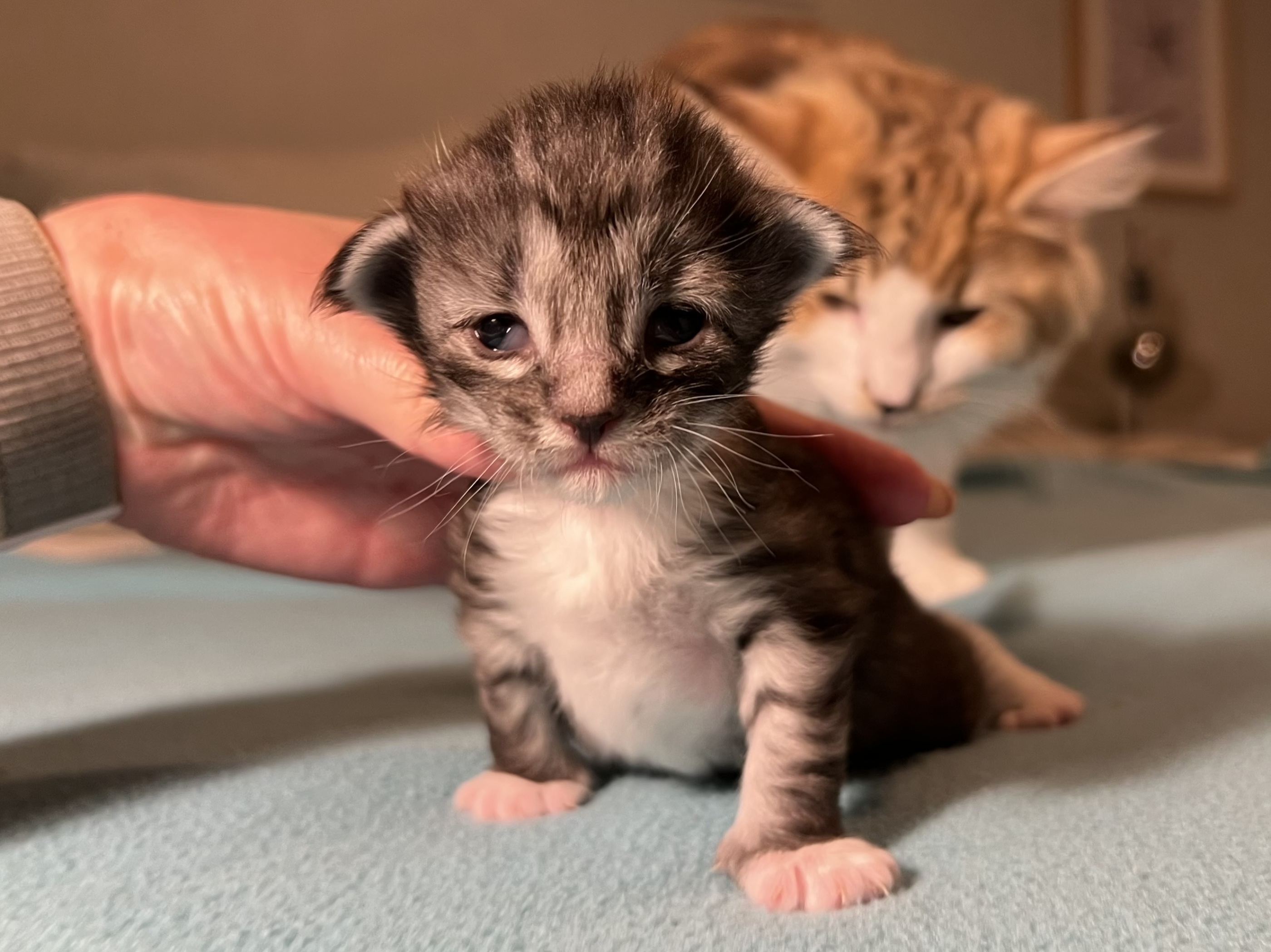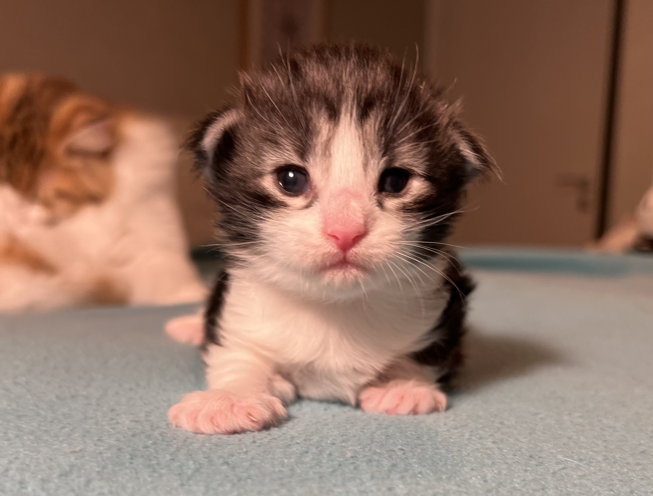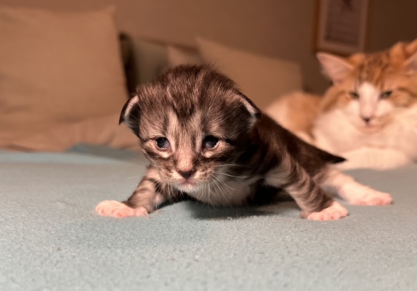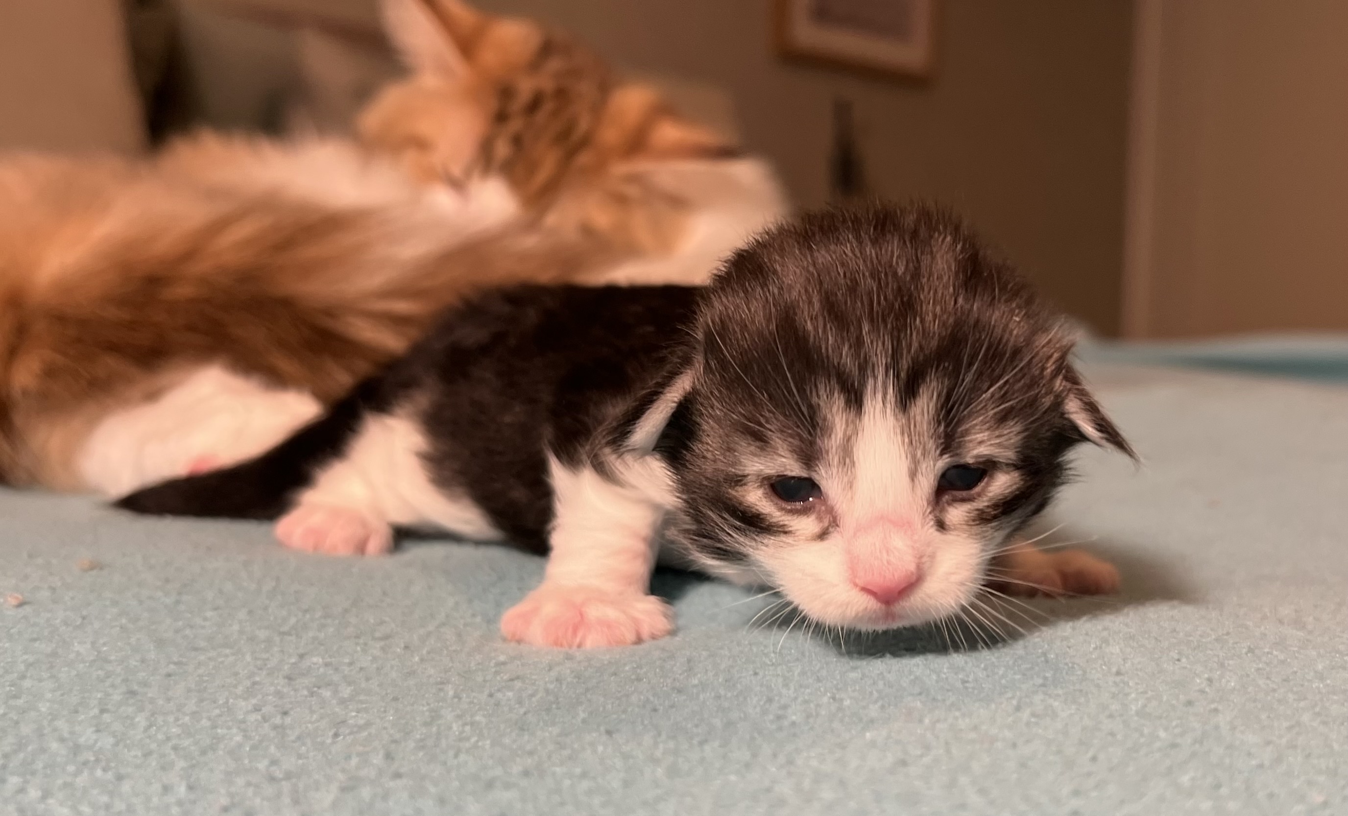 The kittens are moving around more, so I will soon have to give them more space to move around in.