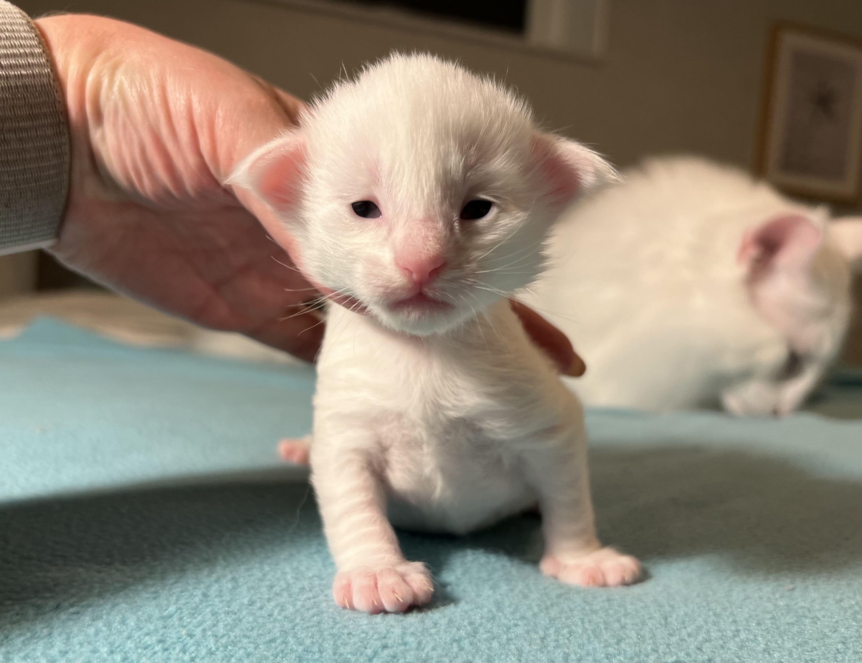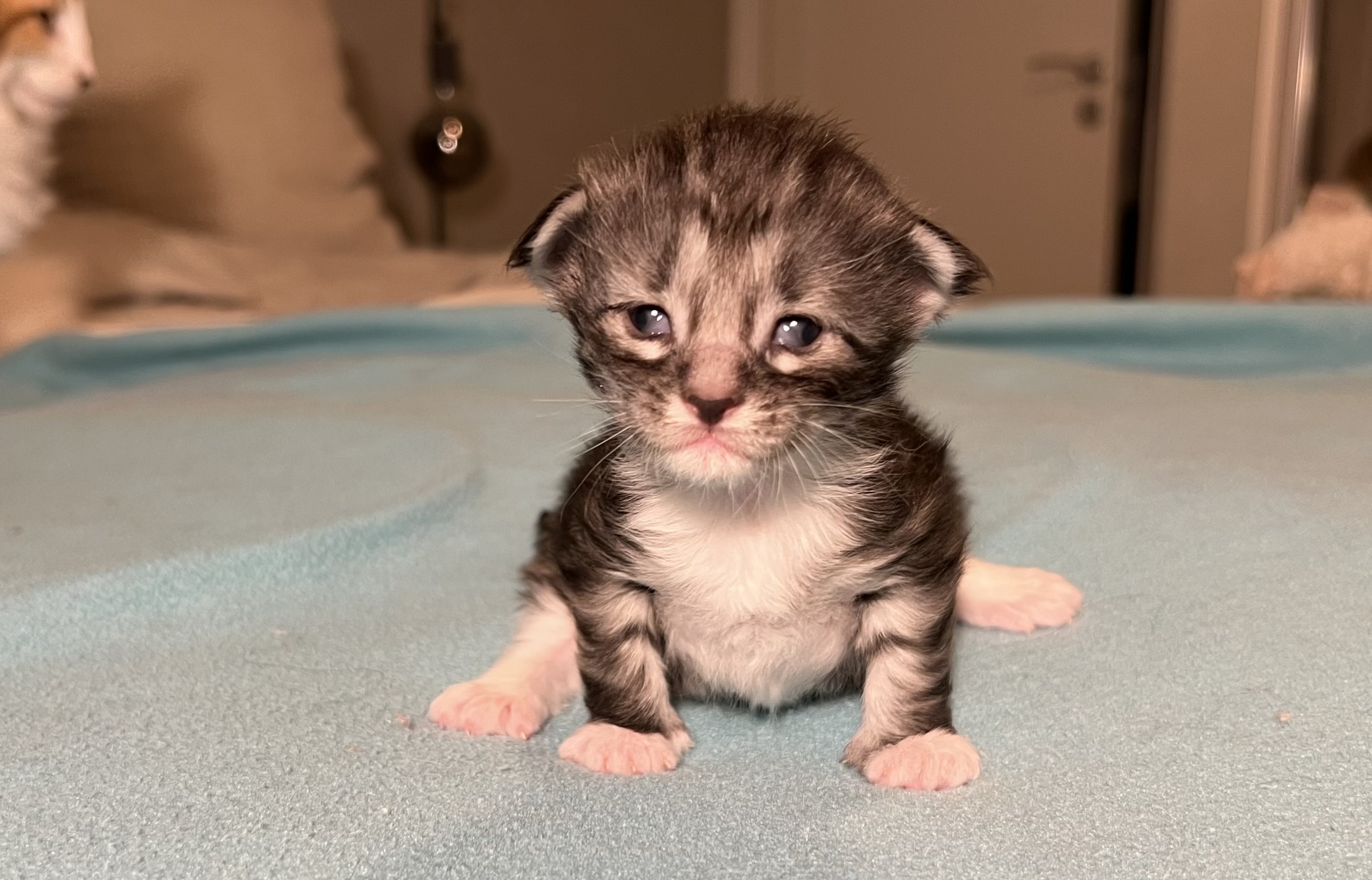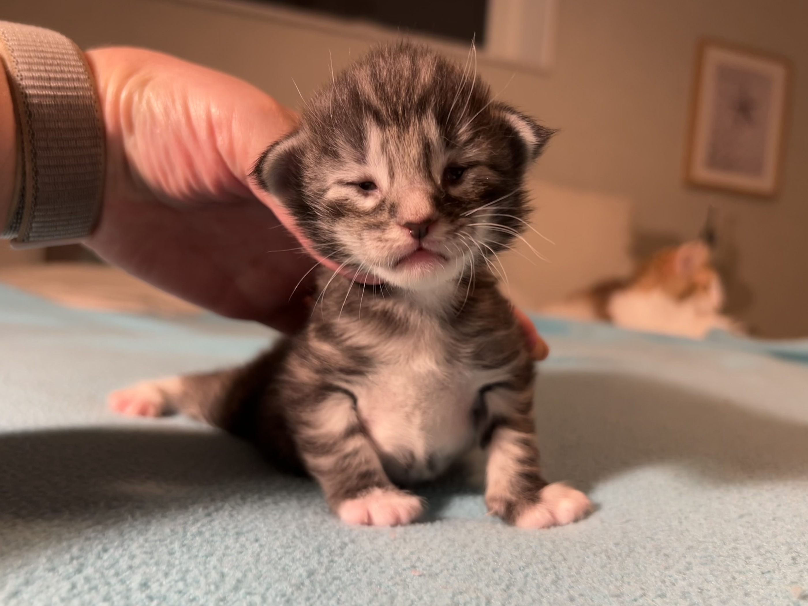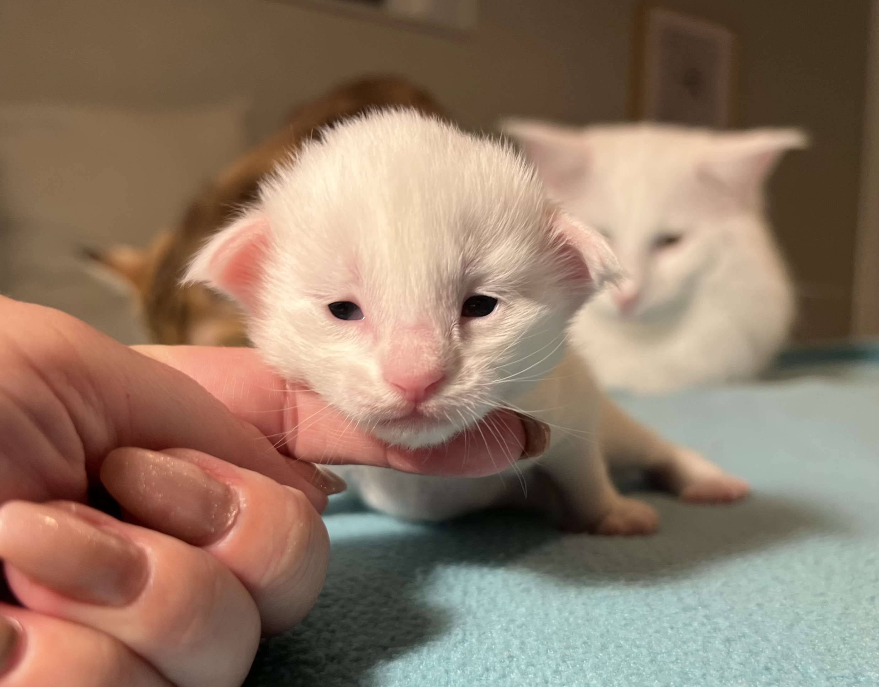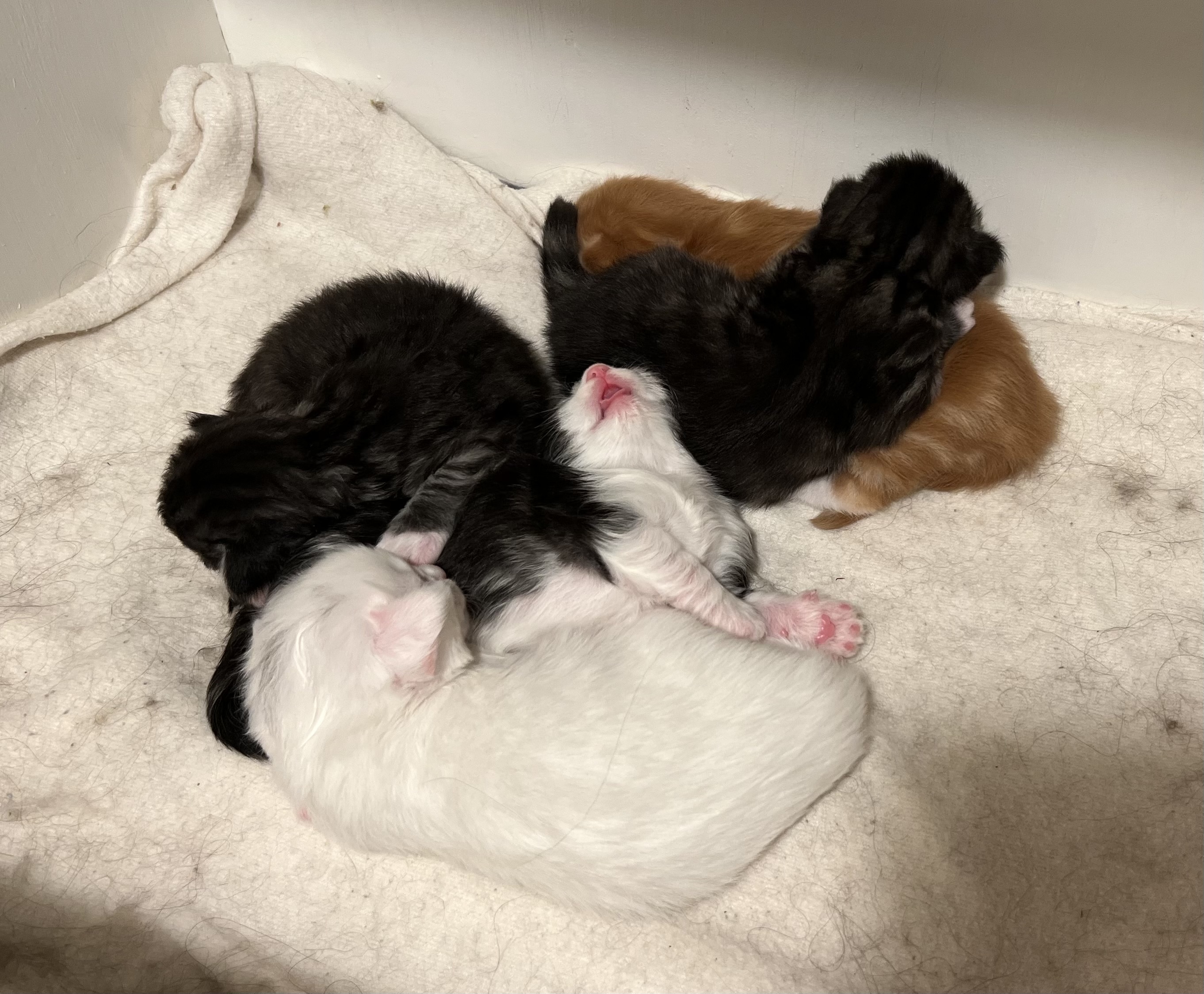Some of the kittens are opening their eyes. They will be more beautiful next week.